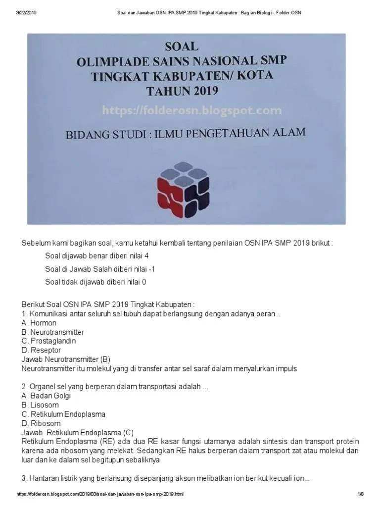 Contoh soal olimpiade sains nasional (osn) biologi smp.